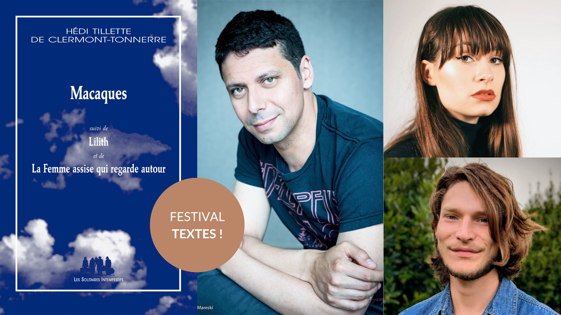 Tout commence dans un bus. Un bus bondé. La petite fille est avec sa grand-mère. Une place se libère. Elles foncent, mais la grand-mère qui boite bouscule par inadvertance un monsieur aux cheveux gris. Le monsieur aux cheveux gris se retourne et traite la grand-mère de la petite fille de sale macaque. … Macaques : Tout commence dans un bus. Un bus bondé. La petite fille est avec sa grand-mère. Une place se libère. Elles foncent, mais la grand-mère qui boite bouscule par inadvertance un monsieur aux cheveux gris. Le monsieur aux cheveux gris se retourne et traite la grand-mère de la petite fille de sale macaque. A partir de là, c’est la guerre ! La femme assise qui regarde autour : Une femme, seule, chez elle, replonge dans ses souvenirs en posant son regard sur les quelques objets qui l’entourent : meubles, bijoux, photographies… Ressurgissent alors des souvenirs, des sensations, et peu à peu remonte de sa mémoire un monde oublié : Celui de l’Alcazar, de Duke Ellington, et de son premier amour… L’homme aux grands sourcils broussailleux. Lilith : C’est l’histoire de la première femme. Pas d’Eve, non, mais de Lilith ? ! Lilith la rebelle, la mauvaise, la démone. Mais que lui est-il vraiment arrivé à cette Lilith ?? Que s’est-il passé pour que l’on oublie jusqu’à son existence ?? Qu’a-t-elle fait de si horrible pour avoir été mise au ban ?