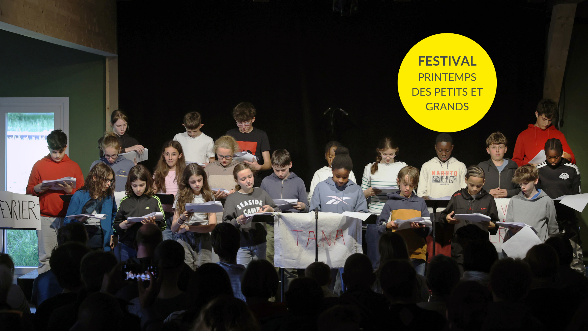 Inauguration du festival le Printemps des Petits et Grands avec la lecture publique des textes lauréats du comité de lecture des collégien·ne·s par les cinquièmes CHAT (Classes à horaires aménagés théâtre) des collèges Jean Moulin et Ronsard.