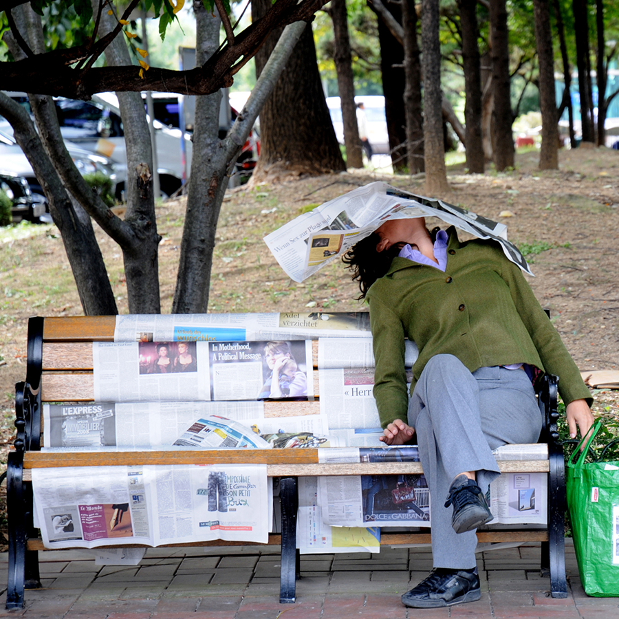 Trajets de vie est un parcours informel qui se découvre dans la ville, pour les passant.e.s, habitant.e.s, aux heures calmes de la journée, le matin, avec des présences singulières sur des bancs publics. Plus qu’un spectacle, il s’agit plutôt d’une invitation à s’arrêter un instant, pour regarder la danse de ces gens, exposés, attentifs aux allées et venues… Sur les bancs, ou autour, au milieu du passage des piétons, des voitures, des bus, 4 solitudes esquissent une gesticulation parfois acrobatique, parfois au bord de l’invisible : trouées poétiques où le grésillement d’une radio sortira d’un cabas, où des feuilles de journaux se colleront au visage comme un masque de fanfaron, où des capsules de bouteille colorées se disperseront comme une pluie d’enfance.